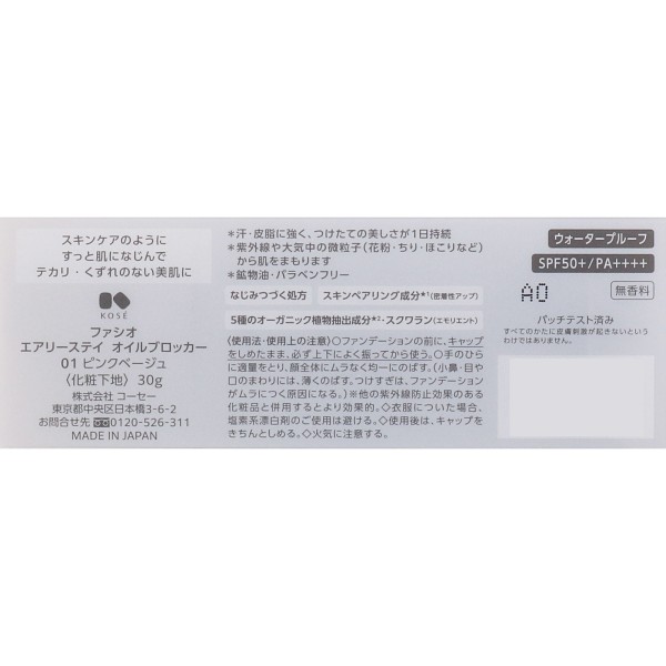 파시오 에어리 스테이 오일 블로커 01 핑크 베이지 30g 코세 > 피부 메이크업