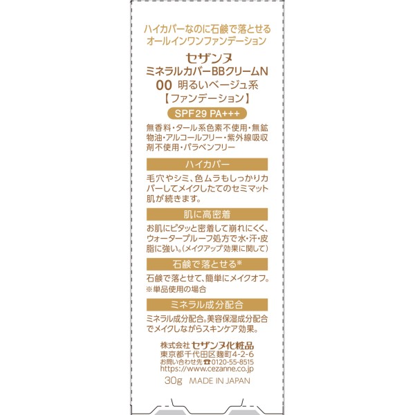 미네랄 커버 BB 크림 N 00 밝은 베이지계 세잔느화장품 > 피부 메이크업