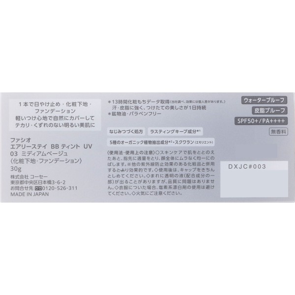 파시오 에어리 스테이 BB 틴트 UV 03 미디엄 베이지 30g 코세 > 피부 메이크업