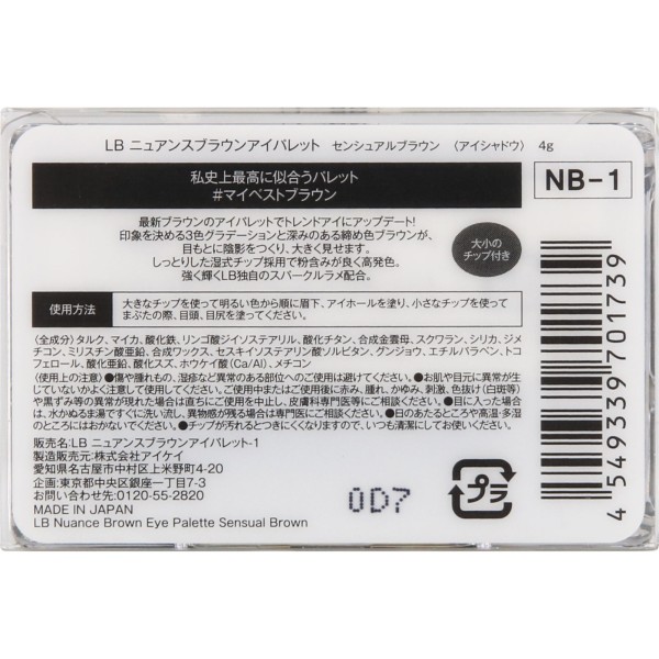 LB 뉘앙스 브라운 아이 팔레트 센슈얼 브라운 4g 아이케이 > 눈 메이크업 아이컬러·아이섀도