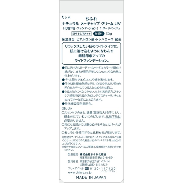 치후레 내추럴메이크업크림UV1 30g 치후레화장품 > 피부 메이크업