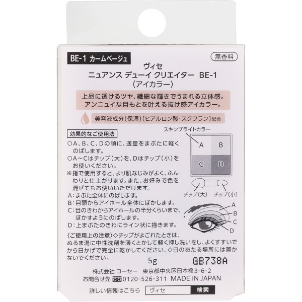 비세 뉘앙스 듀이 크리에이터 BE-1 캄베이지 5g 코세 > 눈 메이크업 아이컬러·아이섀도