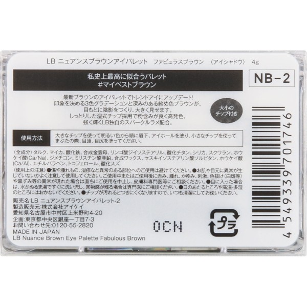 LB 뉘앙스브라운아이팔레트 파뷸러스브라운 4g 아이케이 > 눈 메이크업 아이컬러·아이섀도