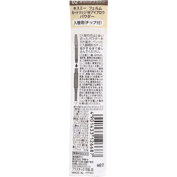 키스미 페름 카트리지W 아이브로우파우더 (교체용) 02 0.2g 이세한 > 눈 메이크업 아이브로우