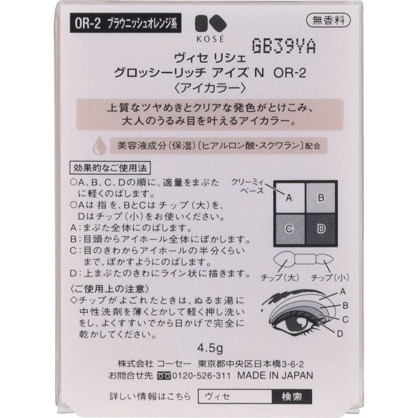 비세 리쉐 글로시리치아이즈N OR-2 브라우니시오렌지계 4.5g 코세 > 눈 메이크업 아이컬러·아이섀도
