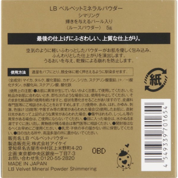 LB 벨벳미네랄파우더 시머링 5g 아이케이 > 피부 메이크업