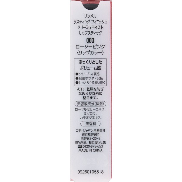 림멜 라스팅피니시 크리미모이스트 립스틱 003 > 입술 메이크업
