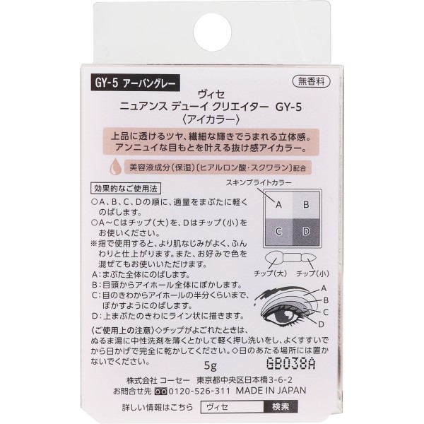비세 뉘앙스 듀이 크리에이터 GY-5 어반그레이 5g 코세 > 눈 메이크업 아이컬러·아이섀도