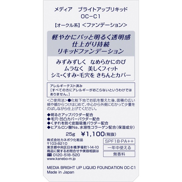 미디어 브라이트업리퀴드 OC-C1 25g 가네보 > 피부 메이크업
