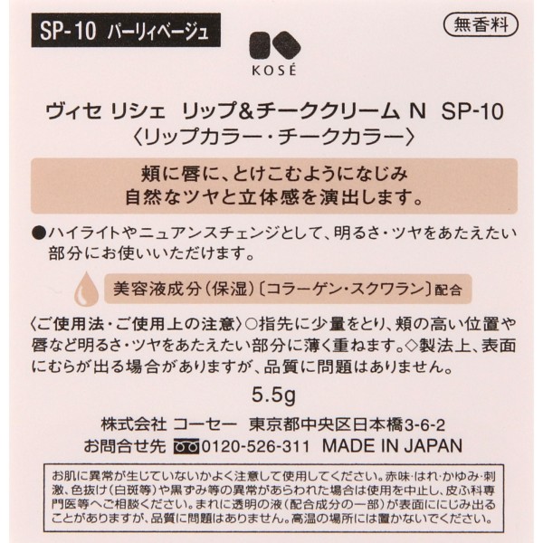 비세 리쉐 립&치크크림N SP-10 펄리베이지 5.5g 코세