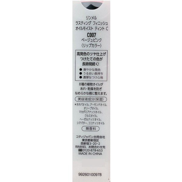 림멜 라스팅피니시 오일모이스트틴트C 007 > 입술 메이크업