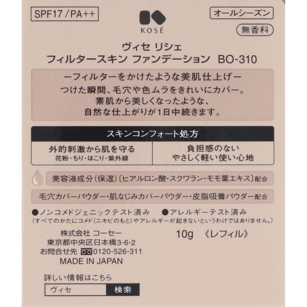 비세 리쉐 필터스킨파운데이션 BO-310 보통 밝기의 노란기 있는 피부색 10g 코세 > 피부 메이크업