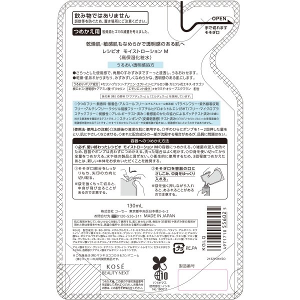 레시피오 모이스트로션M 리필 130ml > 페이스 케어