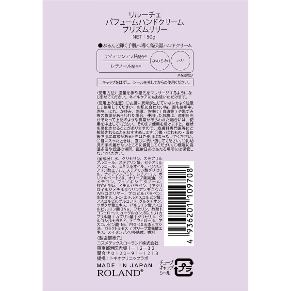 리루체 퍼퓸핸드크림 PL 50g 코스메텍스로랜드