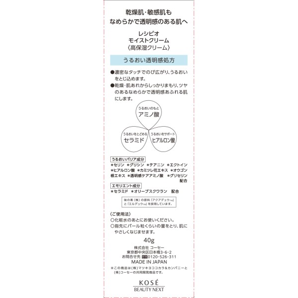 레시피오 모이스트크림 40g > 페이스 케어