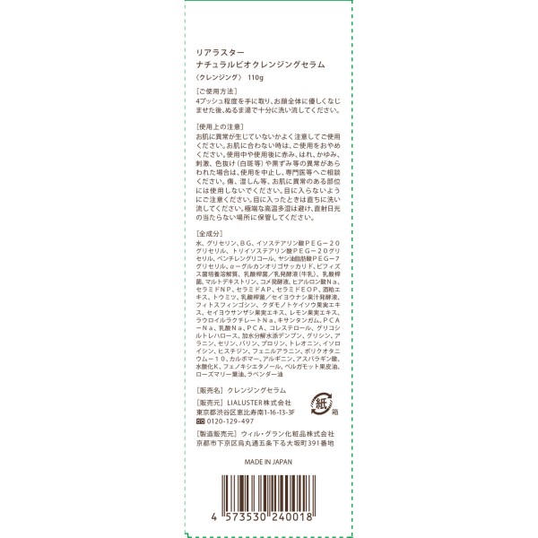 리아라스타 내추럴바이오클렌징세럼 110g LIALUSTER > 클렌징