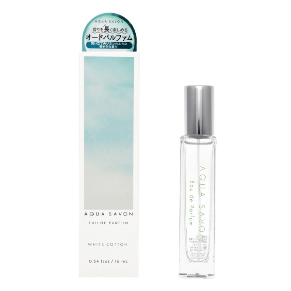 アクアシャボンシリーズからオードパルファムが登場。アクアシャボン内人気No.2の「ホワイトコットンの香り」。香りが長く楽しめて、持ち運びにも便利