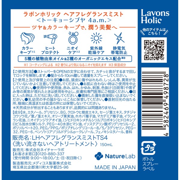 라봉호리쿠 헤어프래그런스미스트 도쿄시부야4AM 150ml 네이처랩 > 유니섹스 라이트 프래그런스