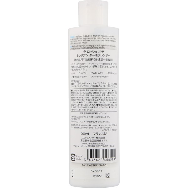 皮膚をやわらげ、皮膚本来の機能をサポートするラロッシュポゼターマルウォーター(整肌成分)配合の乳液タイプの洗顔料です。メイクや皮膚の汚れを優しい感触で落とします。拭き取り・洗い流しどちらでもお使いいただけます。