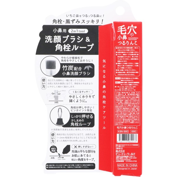 やわらか繊細毛で角栓をやさしくおそうじする竹炭配合の小鼻洗顔ブラシと、ピンポイントで角栓を除去する角栓ループを1本にしました。