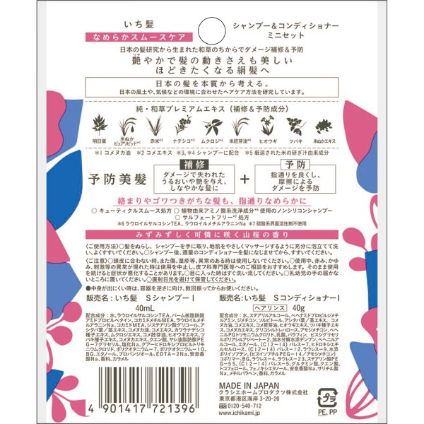 이치카미 매끄러운스무스케어 샴푸&컨디셔너 미니세트 40ml+40g 크라시에홈프로덕츠 > 헤어케어: 아웃배스