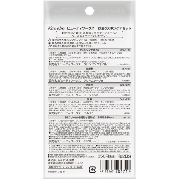 뷰티워크스 외박스킨케어세트 1박2일분 가네보 > 기타
