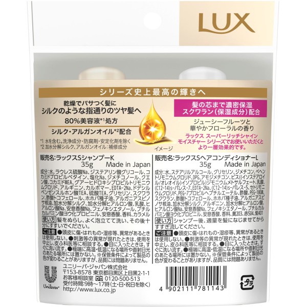 럭스 슈퍼리치샤인 모이스처 미니보습샴푸&컨디셔너 페어세트 35g+35g 유니레버재팬 > 헤어케어: 아웃배스