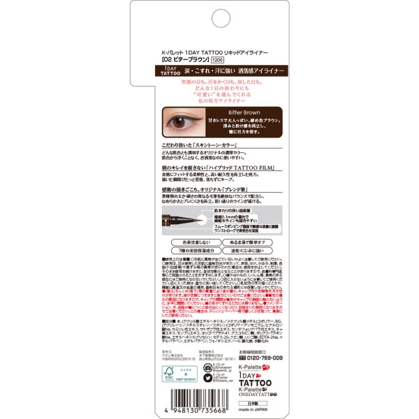K-팔레트 1DAY TATTOO 리퀴드아이라이너 02 크오레 > 아이라이너