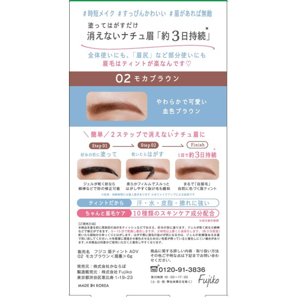 후지코 눈썹 틴트 ADV02 모카브라운 6g 가네보 > 기타
