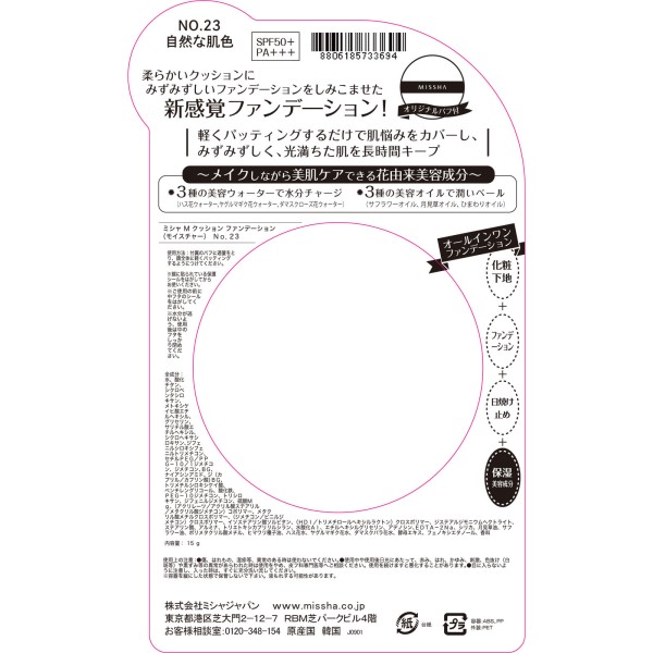 미샤 M 쿠션 파운데이션 (모이스처) NO.23 자연스러운 피부색 15G 미샤재팬 > 미샤
