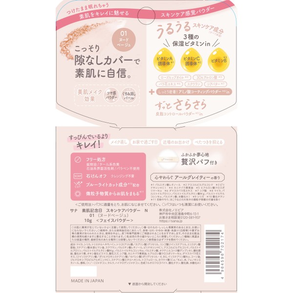 사나 소하다키넨비 스킨케어파우더 N 누드베이지 10g 도키와약품 > 페이스 파우더