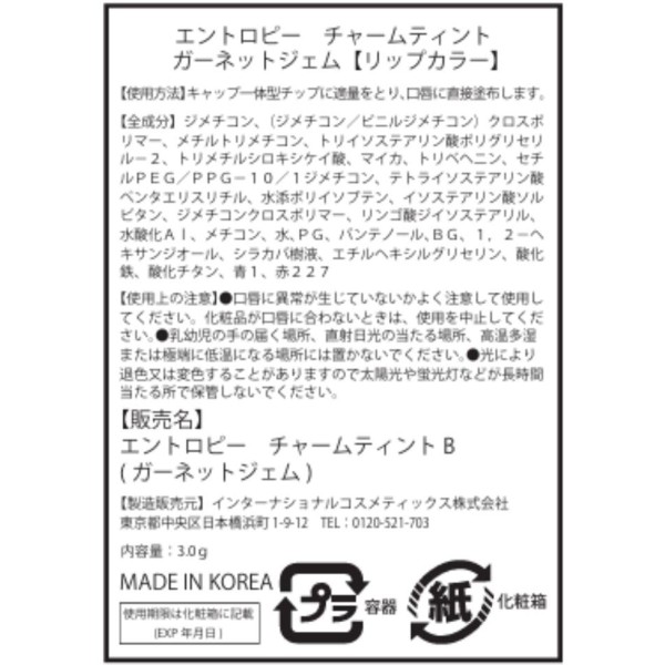 엔트로피 참 틴트 베이스블러리 가넷젬 가넷 인터내셔널코스메틱스 > 입술 메이크업 립 컬러·글로스