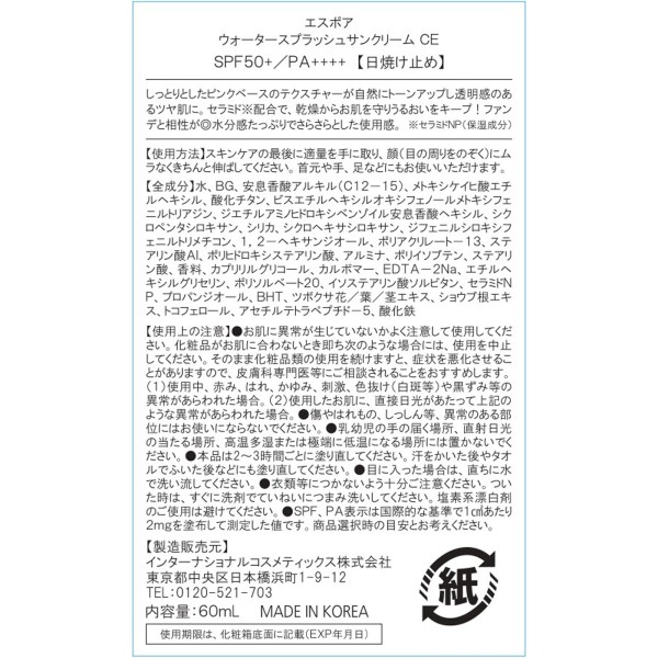 에스포아 워터스플래시선크림 CE 세라마이드 아모레퍼시픽재팬 > 기타