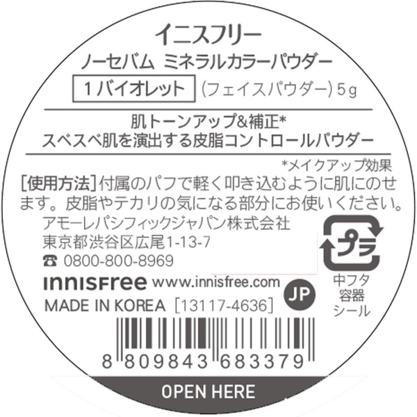 노세범 미네랄컬러파우더 1 5g 아모레퍼시픽재팬 > 페이스 파우더