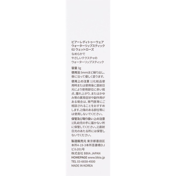 BBIA 레디투웨어 워터립 02 _ BBIA JAPAN > 입술 메이크업 립 컬러·글로스
