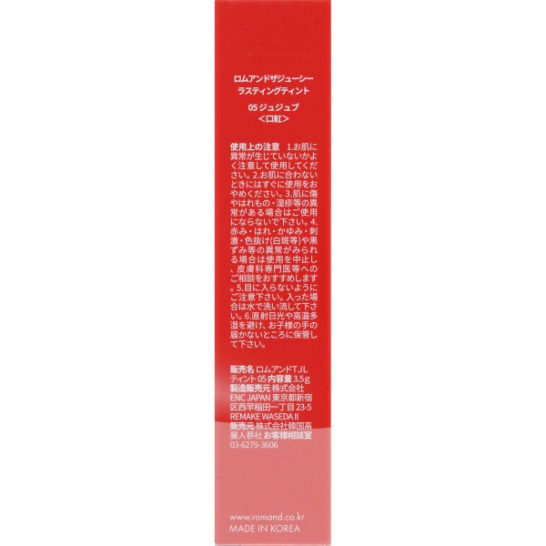롬앤드 더주시 라스팅틴트 05 주주브 _ 한국고려인삼사 > 입술 메이크업 립 컬러·글로스