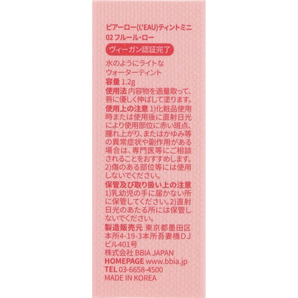 BBIA 로틴트 미니 02 _ BBIA JAPAN > 입술 메이크업 립 컬러·글로스
