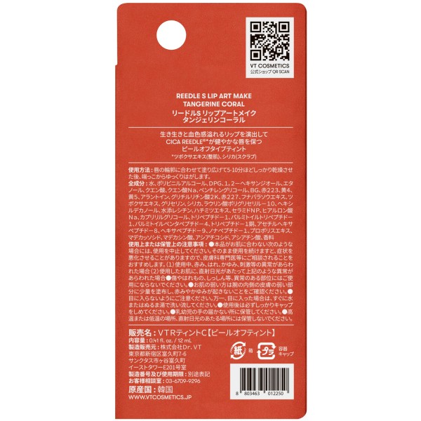 리들S 립아트메이크 탠저린코랄 _ VT CUBE JAPAN > 입술 메이크업 립 컬러·글로스