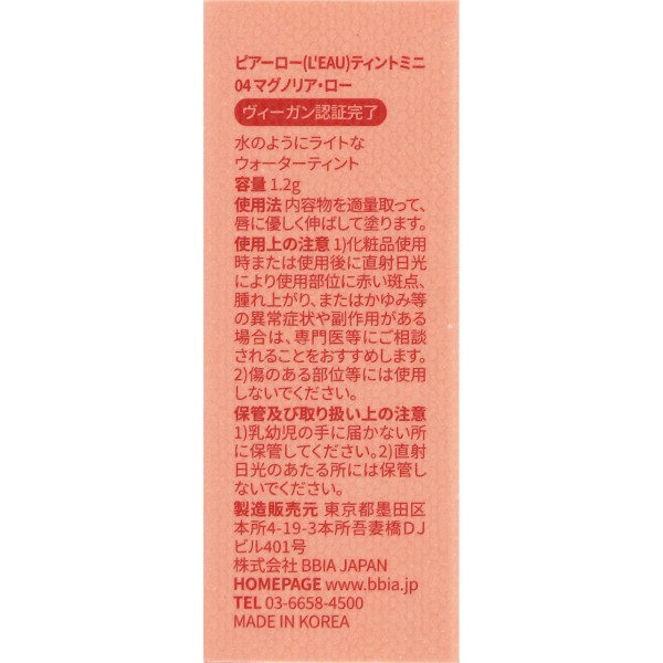 BBIA 로틴트 미니 04 _ BBIA JAPAN > 입술 메이크업 립 컬러·글로스