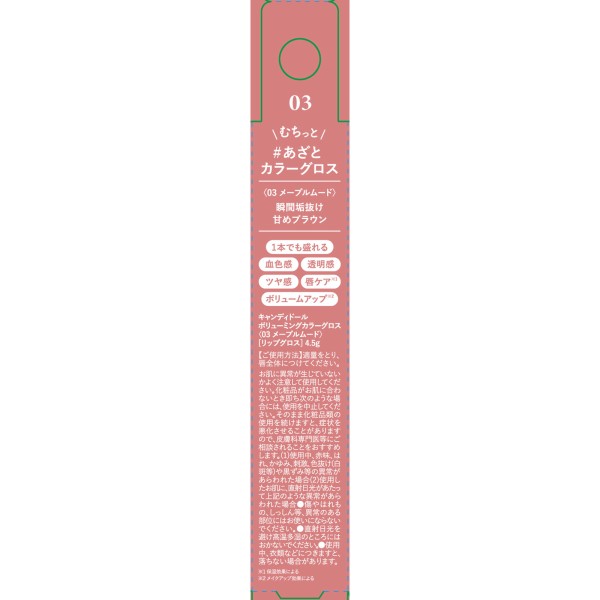透明感を引き立て、唇に自然なボリューム感と血色感をプラスするむちっとあざとカラーグロス。一本でもしっかり盛れる絶妙な発色で、お肌の透明感をより際立たせます。03MAPLEMOOD甘めブラウンでイエベ向けです。重いブラウンではなくイエベ春でも重たくならないカラーです。
