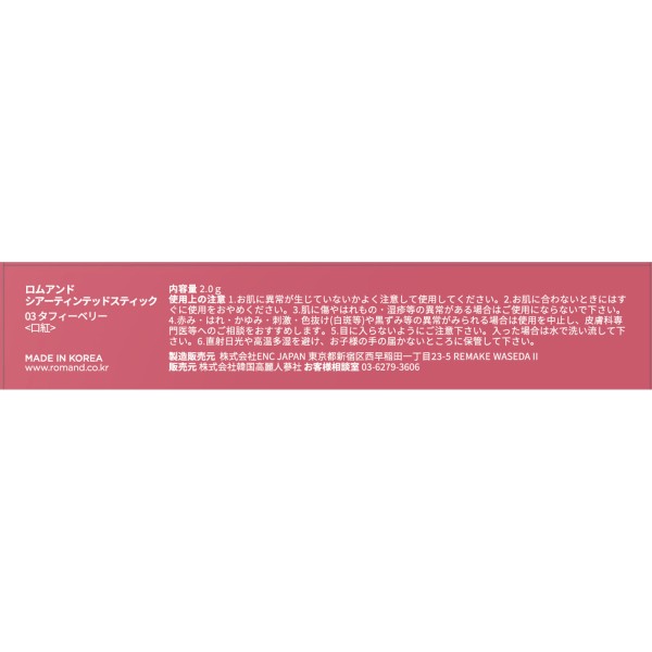롬앤드 시어틴티드스틱 03 _ 한국고려인삼사 > 입술 메이크업 립 컬러·글로스
