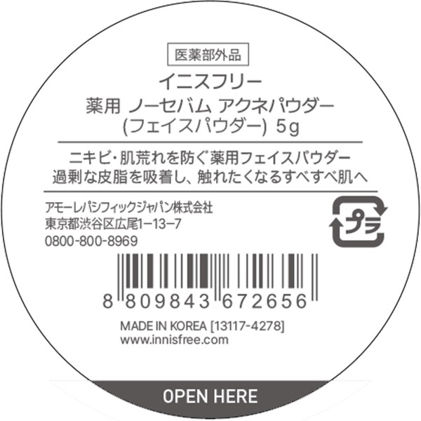 약용 노세범 아크네파우더 5g 아모레퍼시픽재팬 > 페이스 파우더