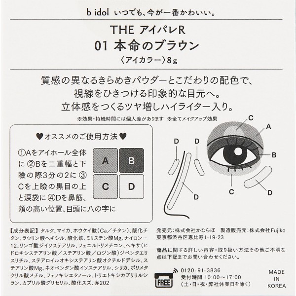 b idol THE 아이팔레트 R 01 운명의 브라운 _ 가네보 > 아이 컬러·아이섀도우