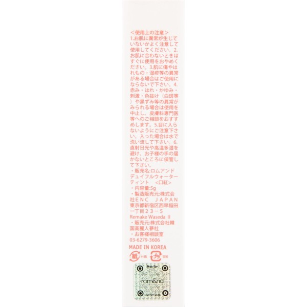 롬앤드 듀이풀 워터틴트 01 5g 한국고려인삼사 > 입술 메이크업 립 컬러·글로스