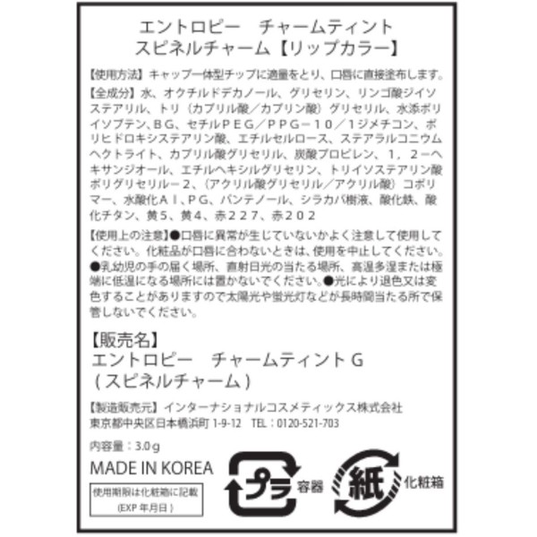 엔트로피 참 틴트 글로시젤 스피넬참 스피넬 인터내셔널코스메틱스 > 입술 메이크업 립 컬러·글로스