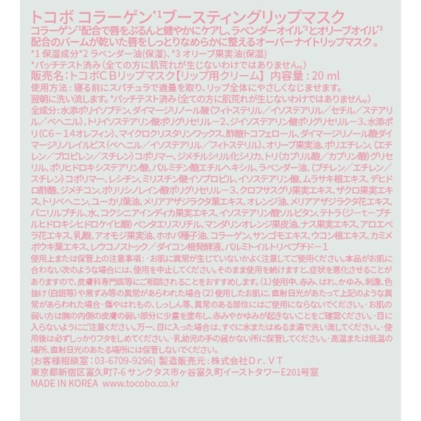 TOCOCO 콜라겐부스팅 립마스크 _ VT CUBE JAPAN > 입술 메이크업 립 컬러·글로스