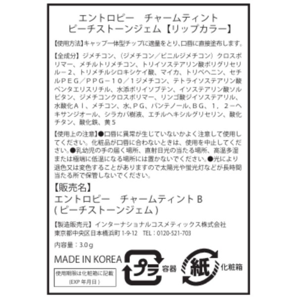 엔트로피 참 틴트 베이스블러리 피치스톤젬 피치스톤 인터내셔널코스메틱스 > 입술 메이크업 립 컬러·글로스
