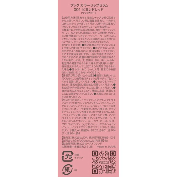 PUCCU color lip serum 001 비욘드 레드 레드 > 입술 메이크업 립 컬러·글로스