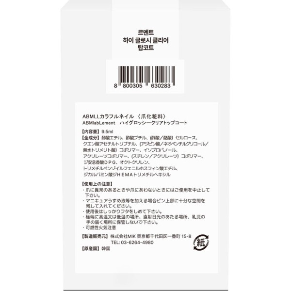 에이비엠 라볼멘트 컬러네일 하이글로시 클리어탑코트 9.5ml