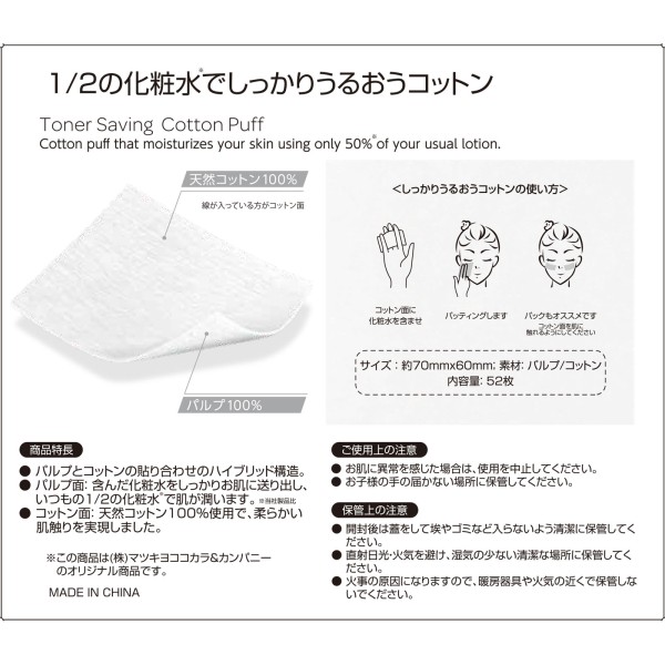 마츠키요 1/2 화장수로 충분히 촉촉해지는 코튼 52매